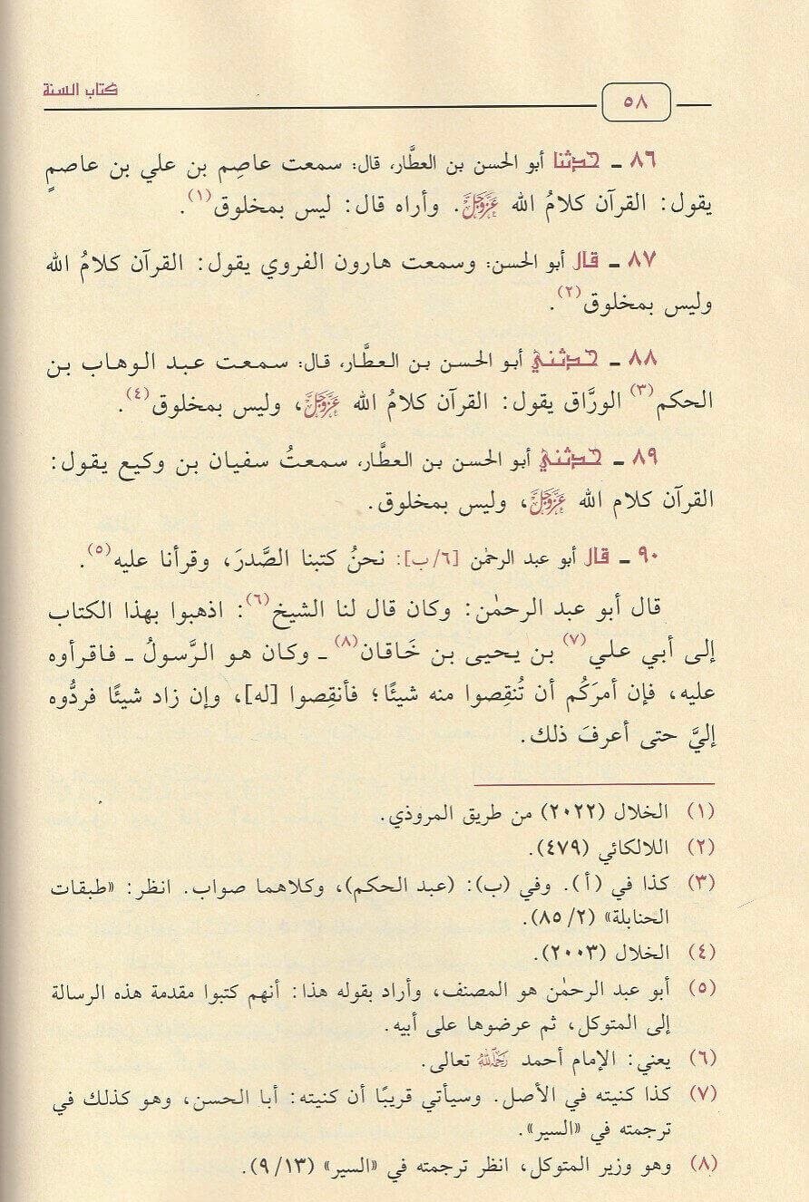 ينقل الإمام عبد الله عن أبيه الإمام أحمد بن حنبل معتقده في البدع , التي ظهرت بها الجماعات الضالة التي ظهرت في عصره أو قبل عصره مثل الجهمية والمعتزلة والخوارج وما حكمه فيهم هل هم كفارا أم مسلمون, فالكتاب مليء بأقوال إمام أهل السنة يرويها ابنه عبد الله عنه.