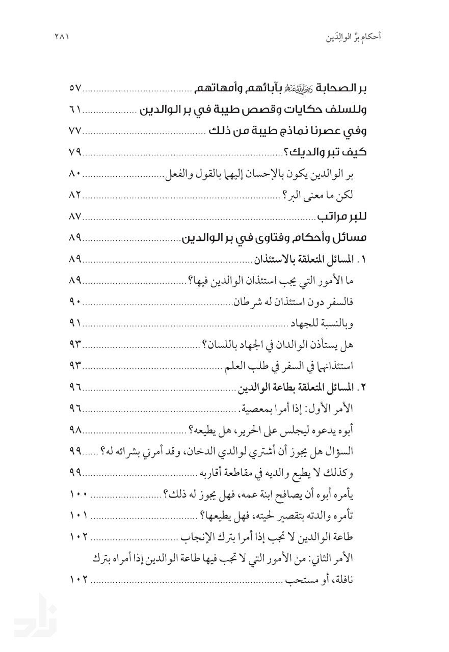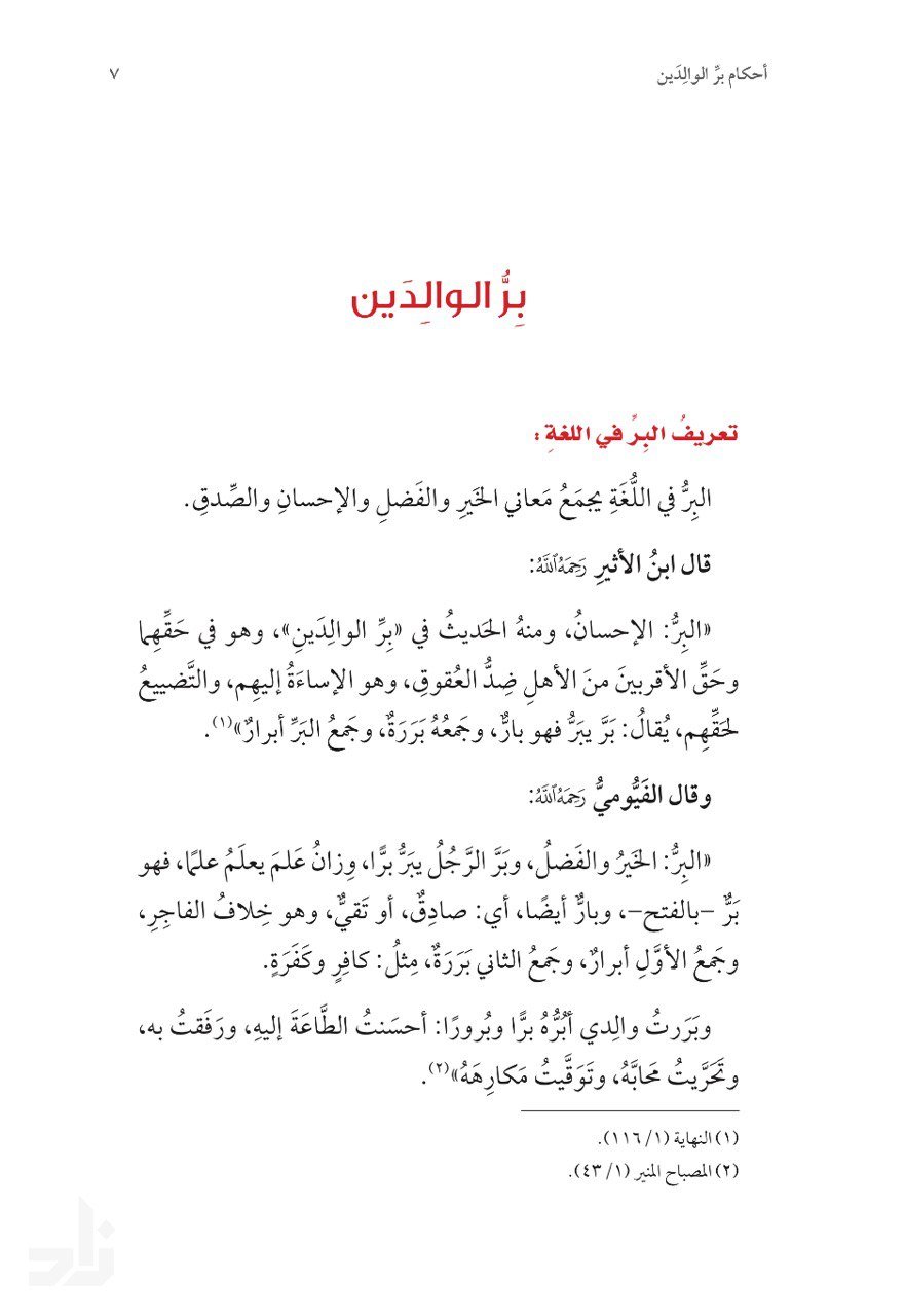 إنَّ برَّ الوالِدَينِ من أجَلِّ الطَّاعاتِ، وأعظَمِ القُرُباتِ، وأوجَبِ الواجِباتِ، وعُقوقَهُما من أعظَمِ المُهلِكاتِ، وأقبَحِ المُنكَراتِ، وصاحِبُ البِّرِ مَوفورٌ له حَظُّهُ الكريمُ، مَذخورٌ له أجرُهُ العَظيمُ، والعاقُّ ذَميمٌ لَئيمٌ، سَقيمُ القَلبِ زَنيمٌ، والبارُّ مَحفوفٌ في الشَّريعَةِ بالثَّناءِ الحَسَنِ، والوَعدِ الكريمِ، مَذكورٌ في الصَّالِحينَ، والعاقُّ مَحفوفٌ بالثَّناءِ السَّيِّءِ، مُتَوَعَّدٌ باللَّعنِ، مَذكورٌ مع الدَّيُّوثِ، ومُدمِنِ الخَمرِ، وقاتِلِ النَّفسِ، وشاهِدِ الزُّورِ. فعلى العاقِلِ أن يُعَظِّمَ الرَّغبةَ، ويُسِنَ الصُّحبةَ، فالبِّرُ شيءٌ هَيِّنٌ: وجهٌ طَلقٌ، وكَلامٌ لَيِّنٌ، والأبرارُ أخيَرُ الأخيارِ. وقد جاءَ هذا الكتابَ تَذكِرَةً صالَحِةً في هذا البابِ؛ ليَجتَهِدَ البارُّ، ويَتوبَ العاقُّ، ويَتَذَكَّرَ الغافِلُ، ويَتَعَلَّمَ الجاهِلُ.