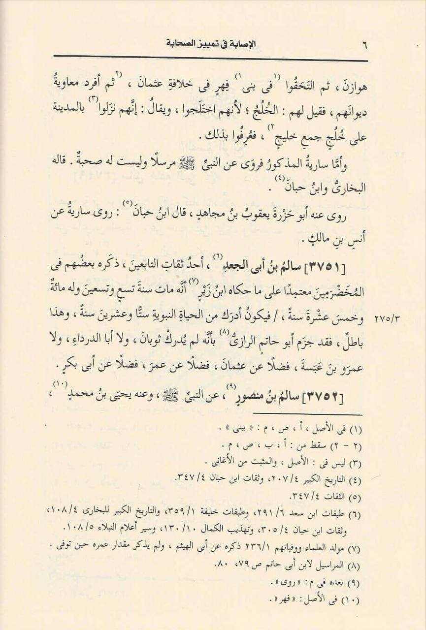الإصابة في تمييز الصحابة كتاب ألفه ابن حجر العسقلاني سعى فيه لاستقصاء جميع الصحابة (أي من صحبوا النبي محمد ﷺ) وتراجمهم، ويعد من أهمّ وأوسع ما ألف من الكتب في تاريخ الإسلام على الإطلاق، وموضوعه التمييز بين الصحابة: من صحت صحبته ومن لم تصح، ومن صح وجوده أو لم يصح. ومجموع تراجمه (12446) ترجمة. وقد استغرق تأليفه أربعين عامًا.
