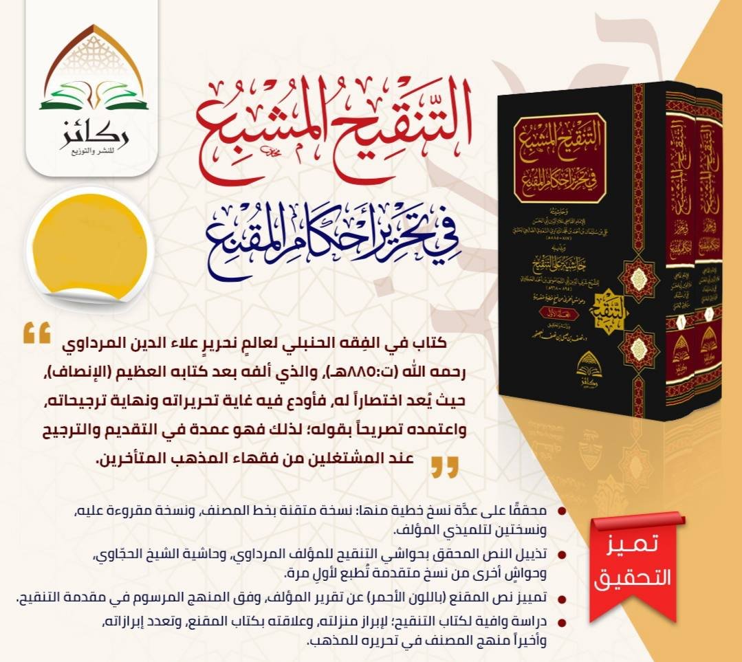 هذا الكتاب يعد العمدة عند الحنابلة، فهو مرجعهم لمعرفة المذهب الحنبلي عند تعارض ” الإقناع ” لأبي النجا موسى الحجاوي مع ” منتهى الإرادات ” لابن النجار الفتوحي، وكذلك لو حصل تعارض بين كتب المرداوي نفسه ” تصحيح الفروع والإنصاف والتنقيح ” فالتنقيح هو المعتمد