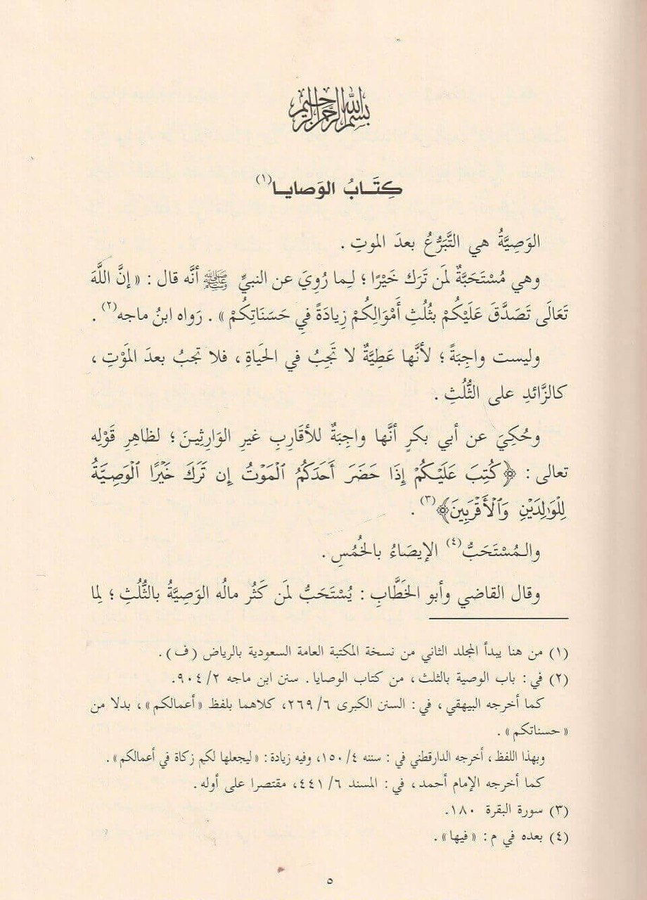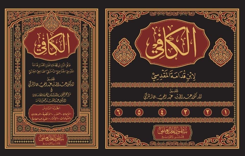 قال الحافظ ابن قدامة في مقدمة كتابه الكافي: هذا كتاب استخرت الله في تأليفه على مذهب إمام الأئمة ورباني الأمة أبي عبد الله أحمد بن محمد بن حنبل الشيباني في الفقه توسطت فيه بين الإطالة والاختصار وأومأت إلى أدلة مسائله مع الاقتصار وعزيت أحاديثه إلى كتب أئمة الأمصار ليكون الكتاب كافيا في فنه عما سواه مقنعا لقارئه بما حواه وافيا بالغرض تطويل جامعا بين بيان الحكم والدليل وبالله أستعين وعليه اعتمد وإياه أسأل أن يعصمنا من الزلل ويوفقنا لصالح القول والنية والعمل ويجعل سعينا مقربا إليه ونافعا لديه وينفعنا والمسلمين بما جمعنا ويبارك لنا فيما صنعنا وهو حسبنا ونعم الوكيل.
