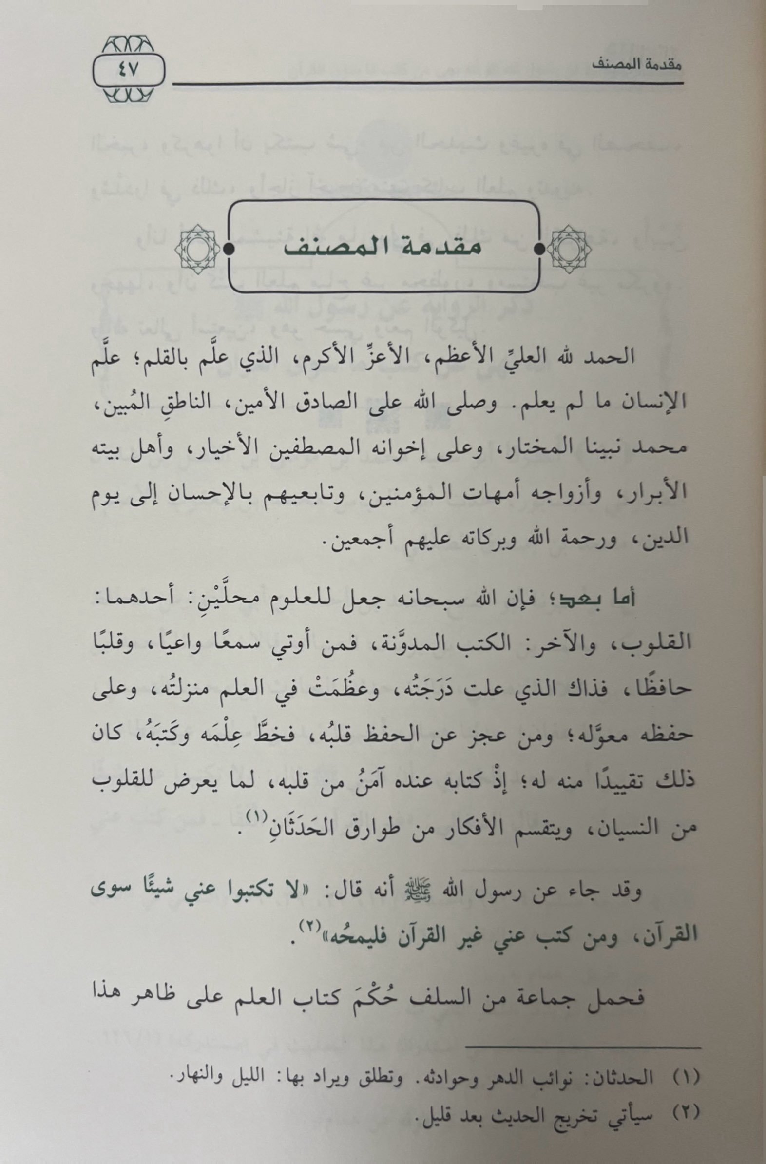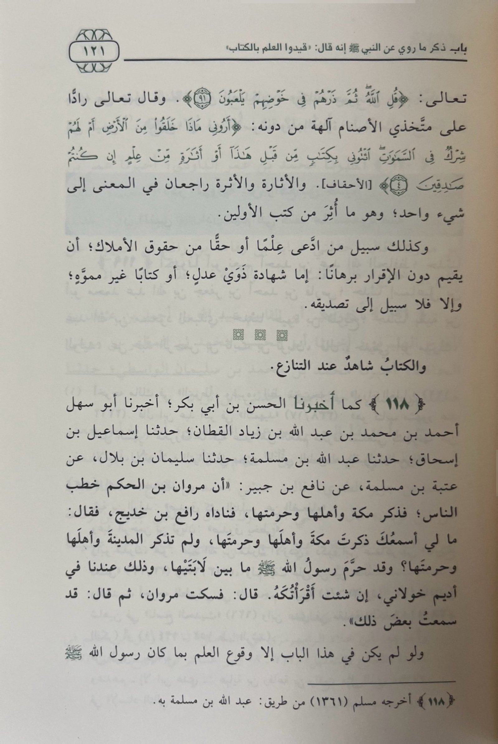 القسم الأول: ويحتوي على النصوص الواردة في كراهة كتابة العلم