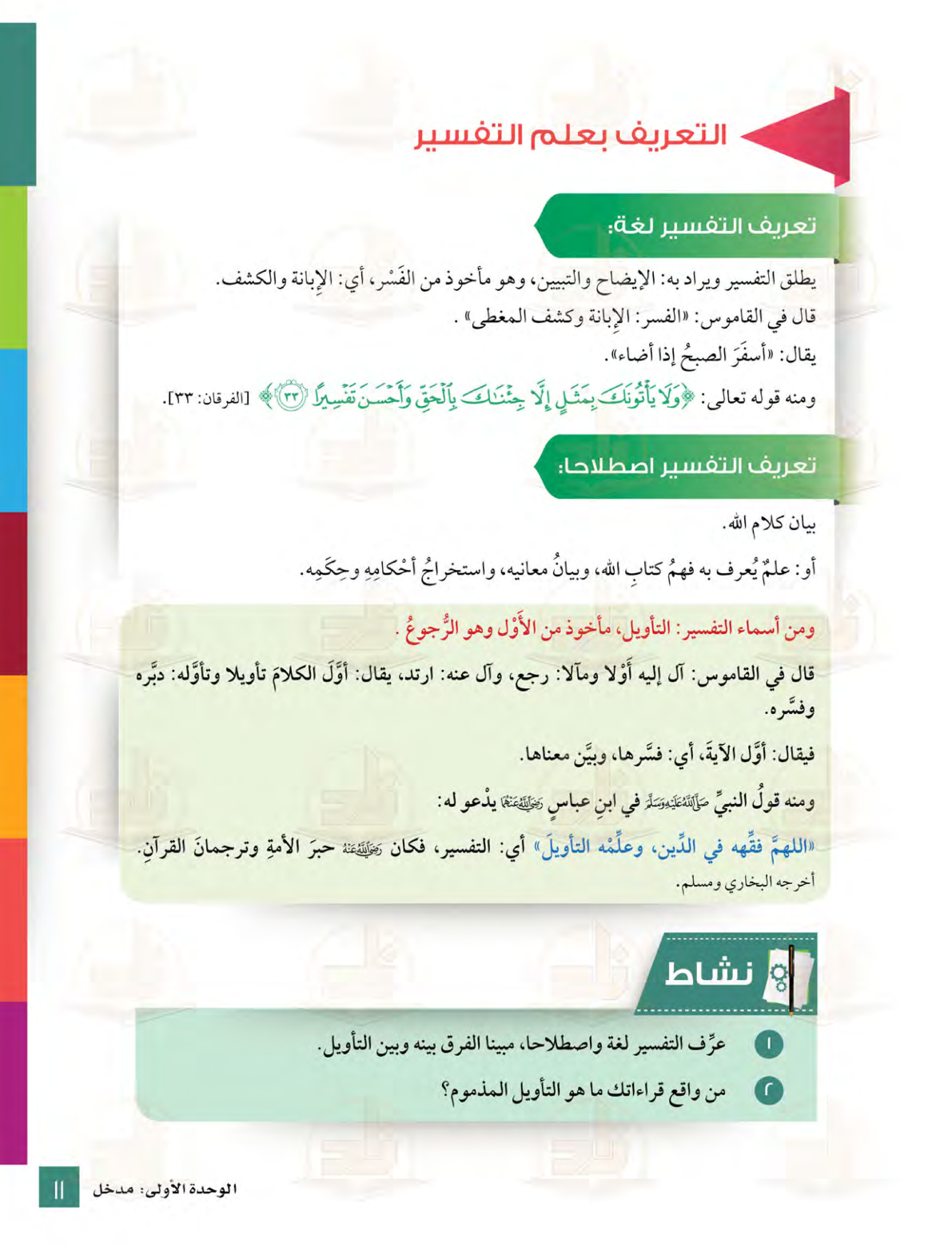 - من كتاب التفسير: المدخل لعلم التفسير، وتفسير سورة الفاتحة، وآية الكرسي، وخواتيم سورة البقرة