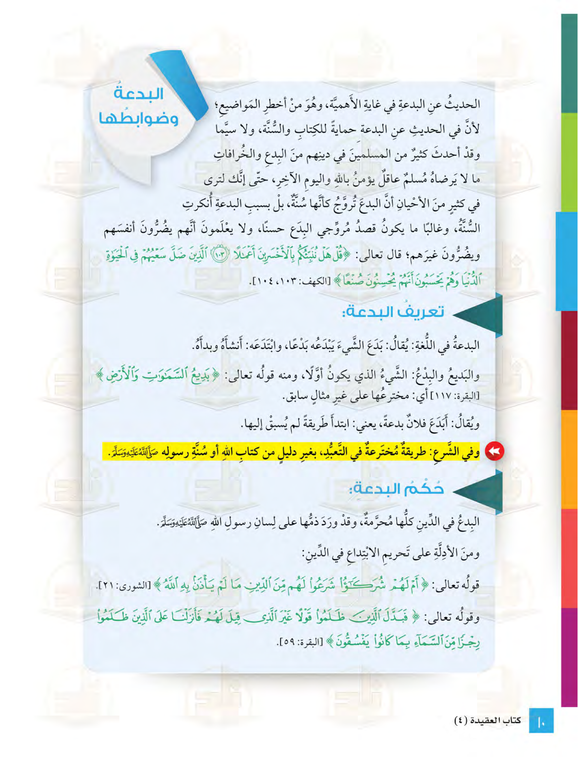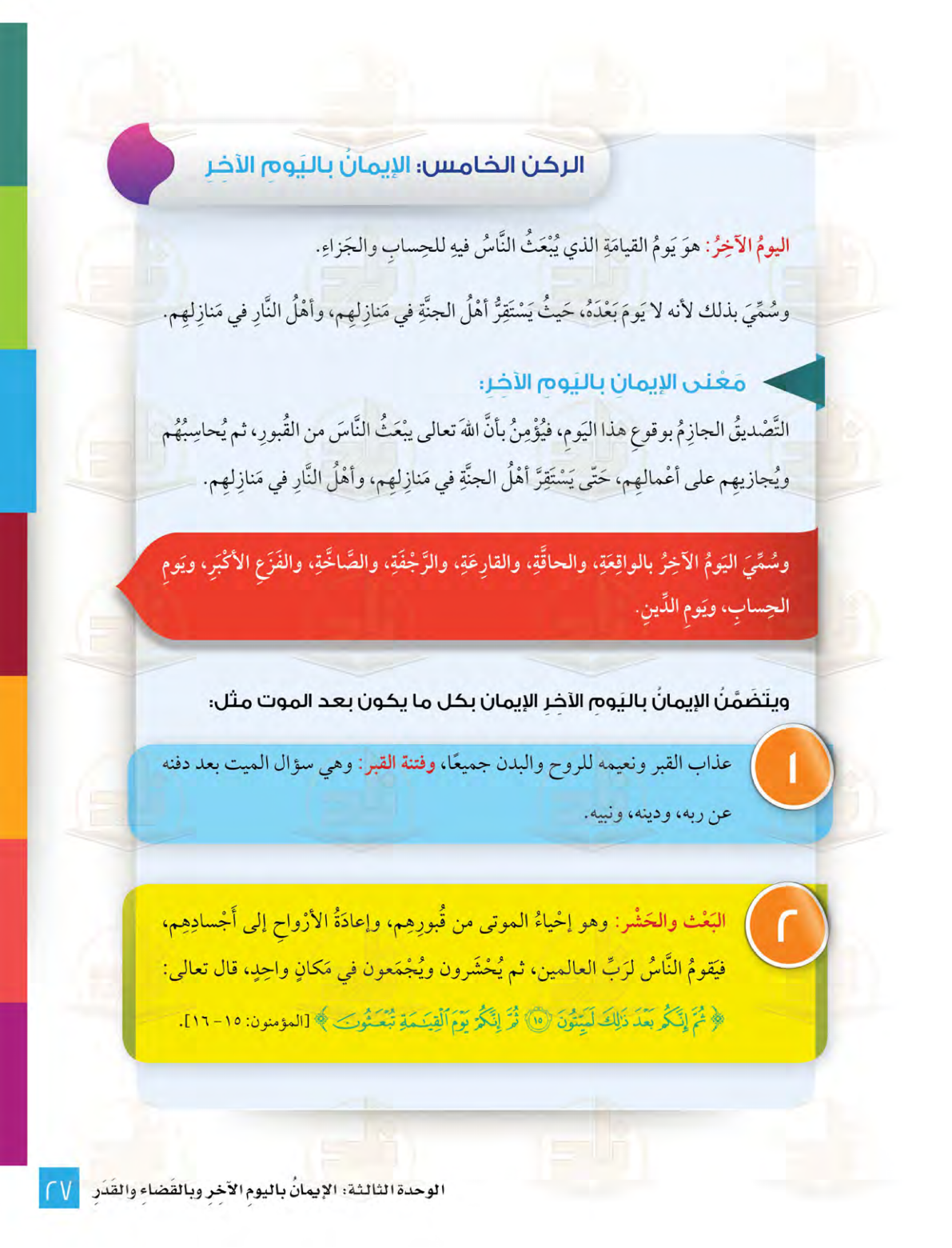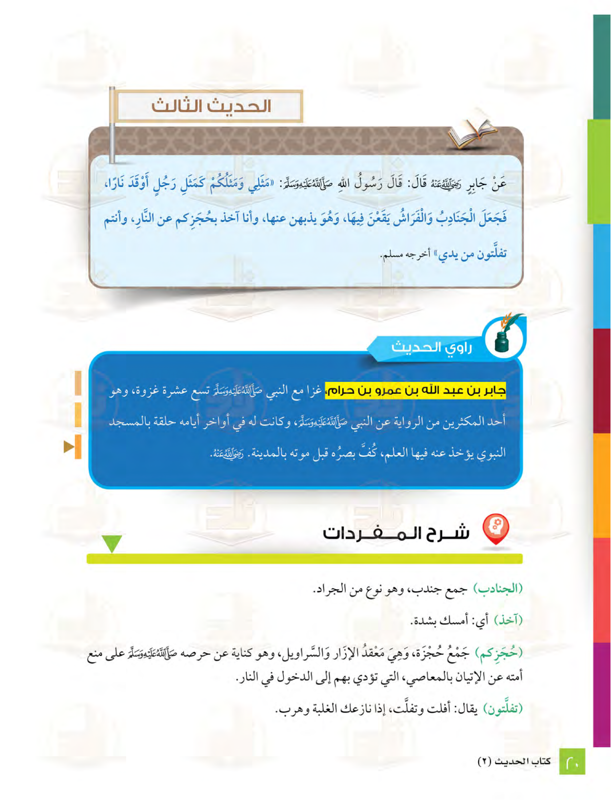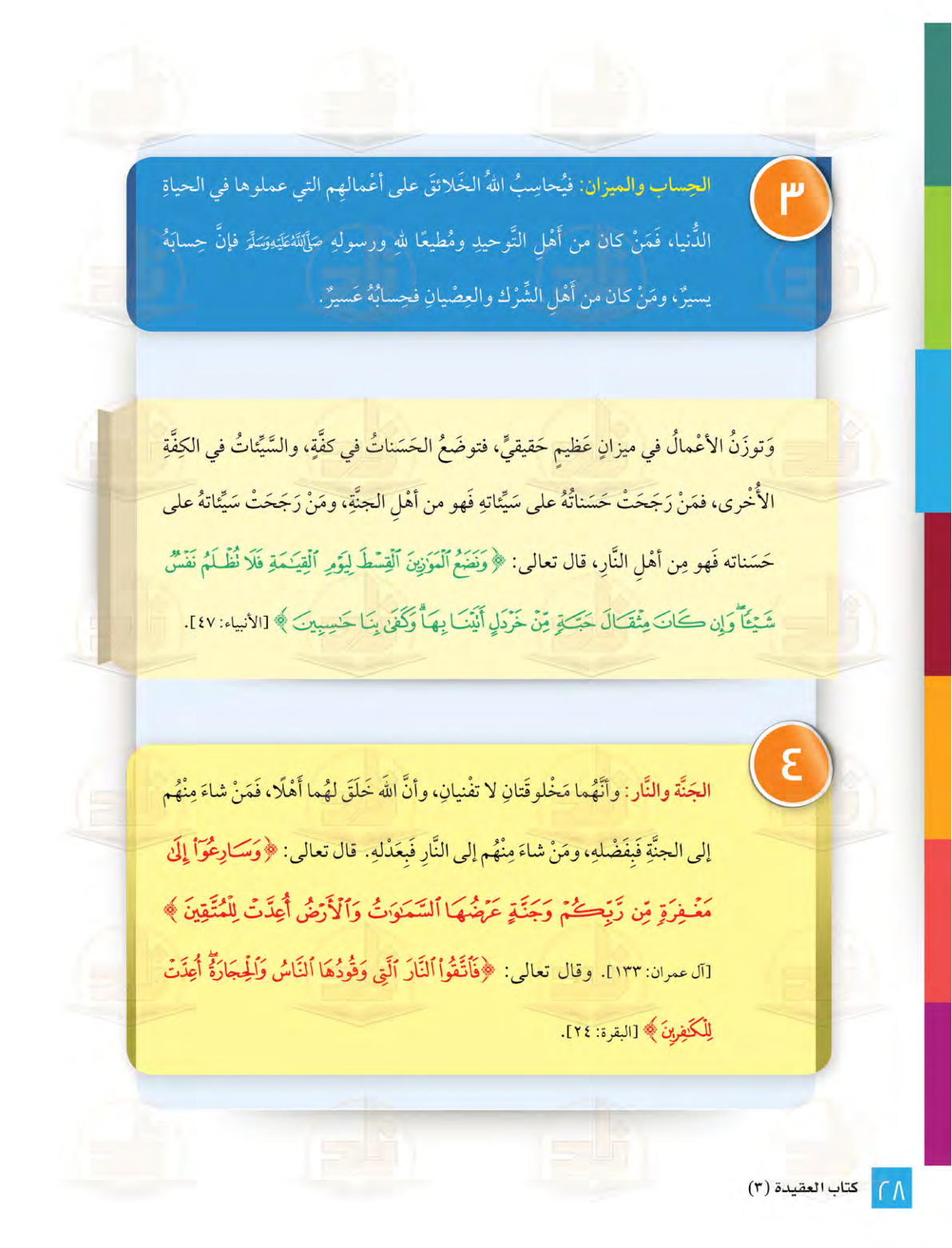 - من كتاب التربية الإسلامية: أبوابا متنوعة في الثقافة الإسلامية، بدءا بكتاب الحقوق، يبين فيه حق الله تعالى ثم حق النبي صلى الله عليه وسلم، ثم حق الصحابة رضي الله عنهم، ثم حق الوالدين ثم حق الزوج والزوجة
