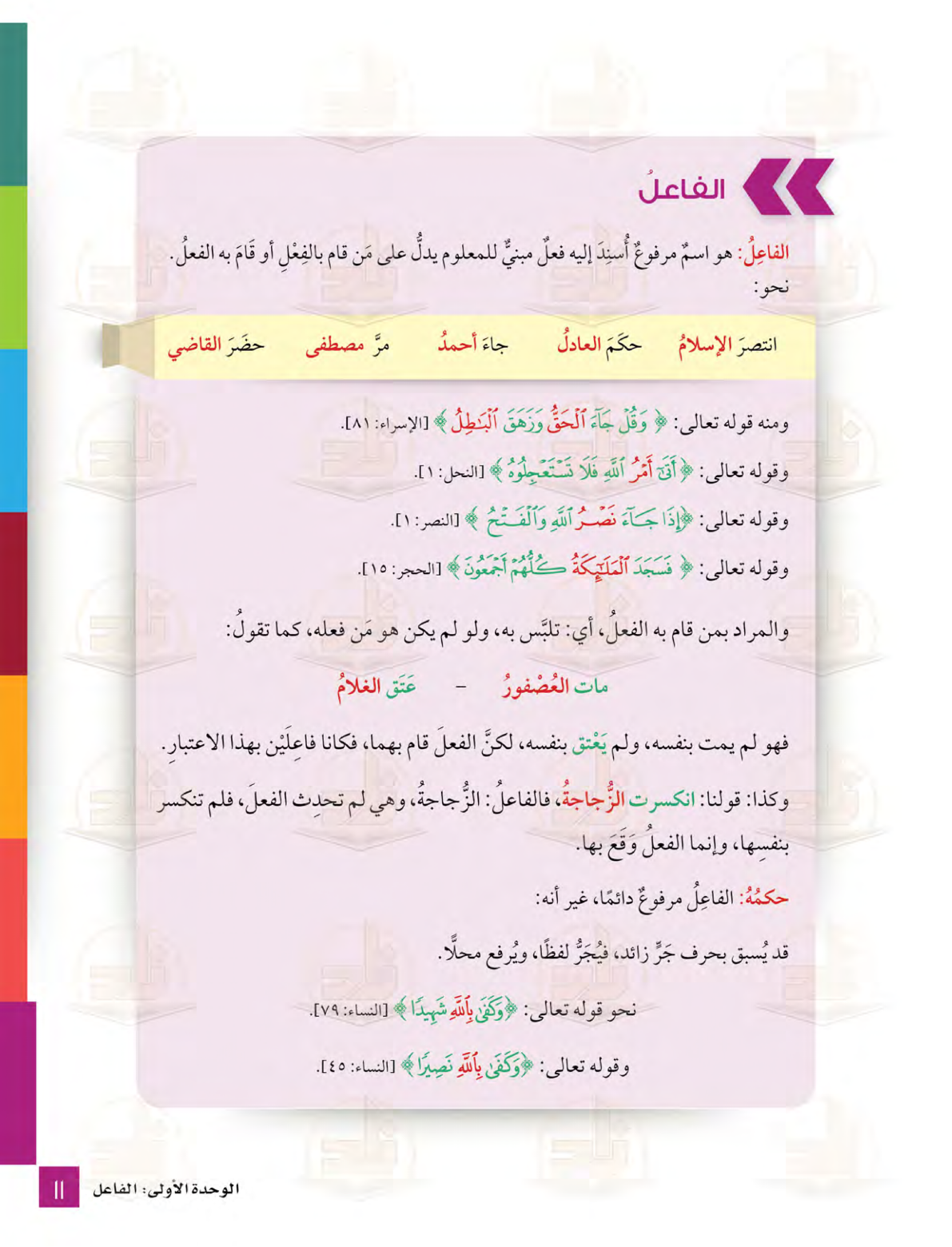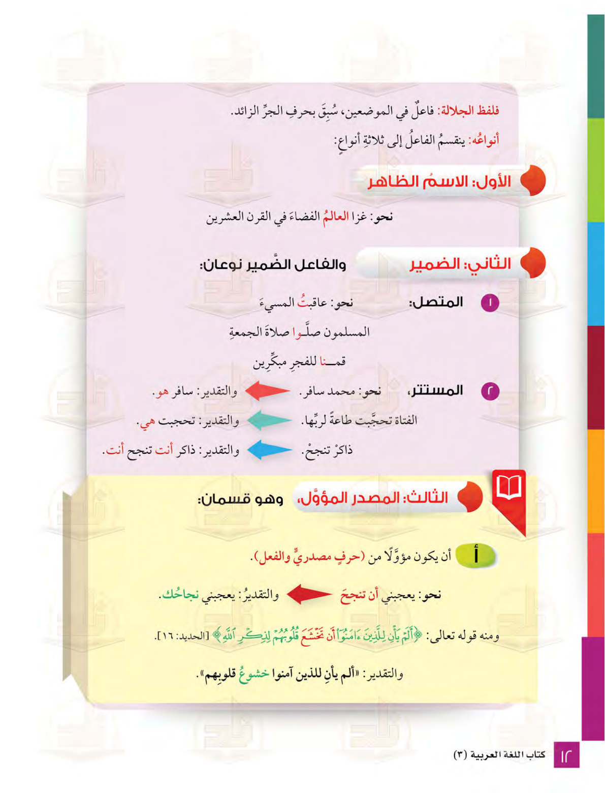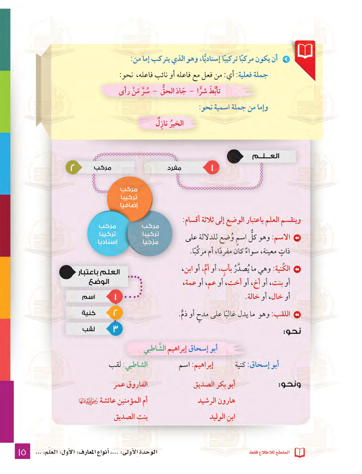 - من كتاب اللغة العربية: جملة من أبواب علم النحو الهامة
