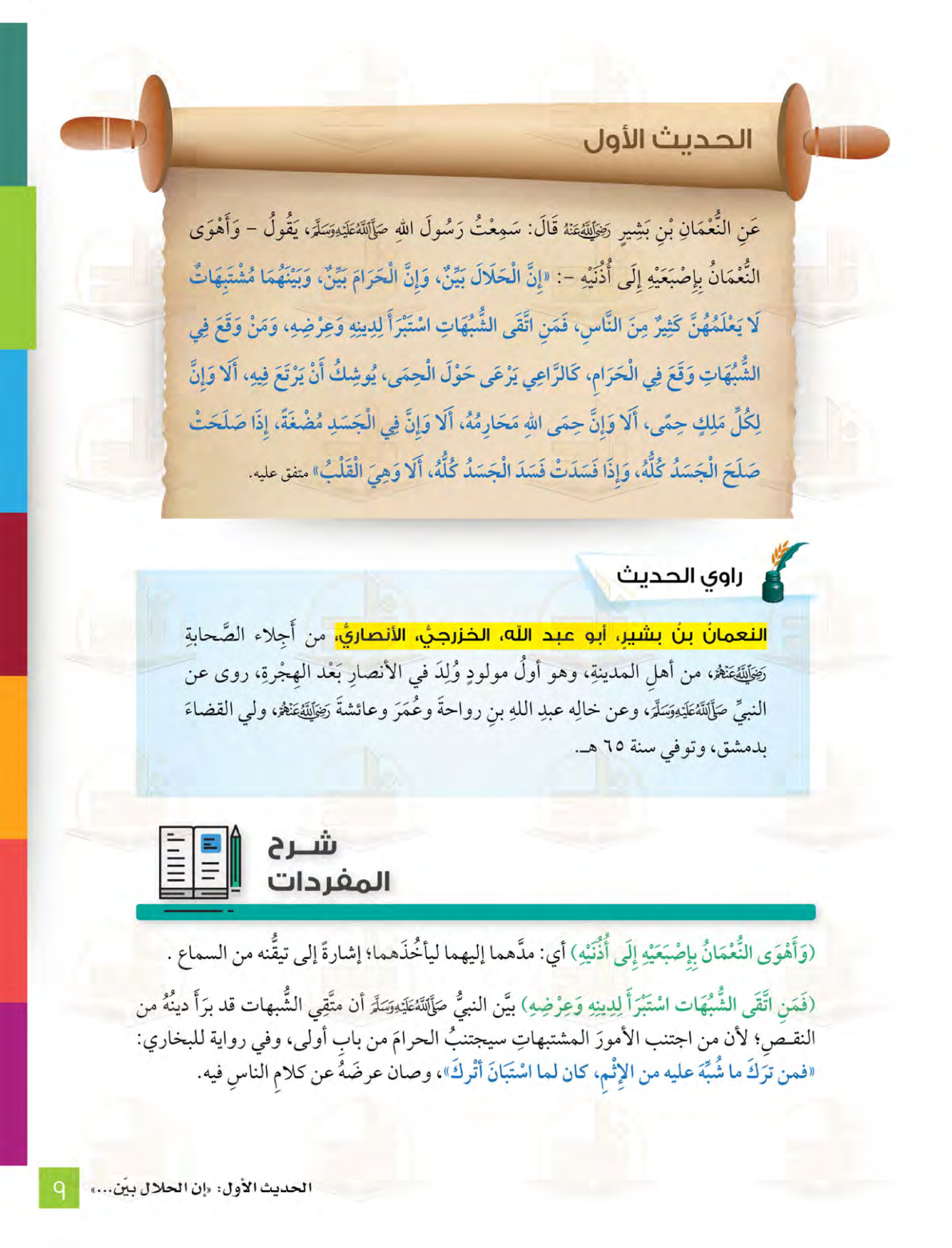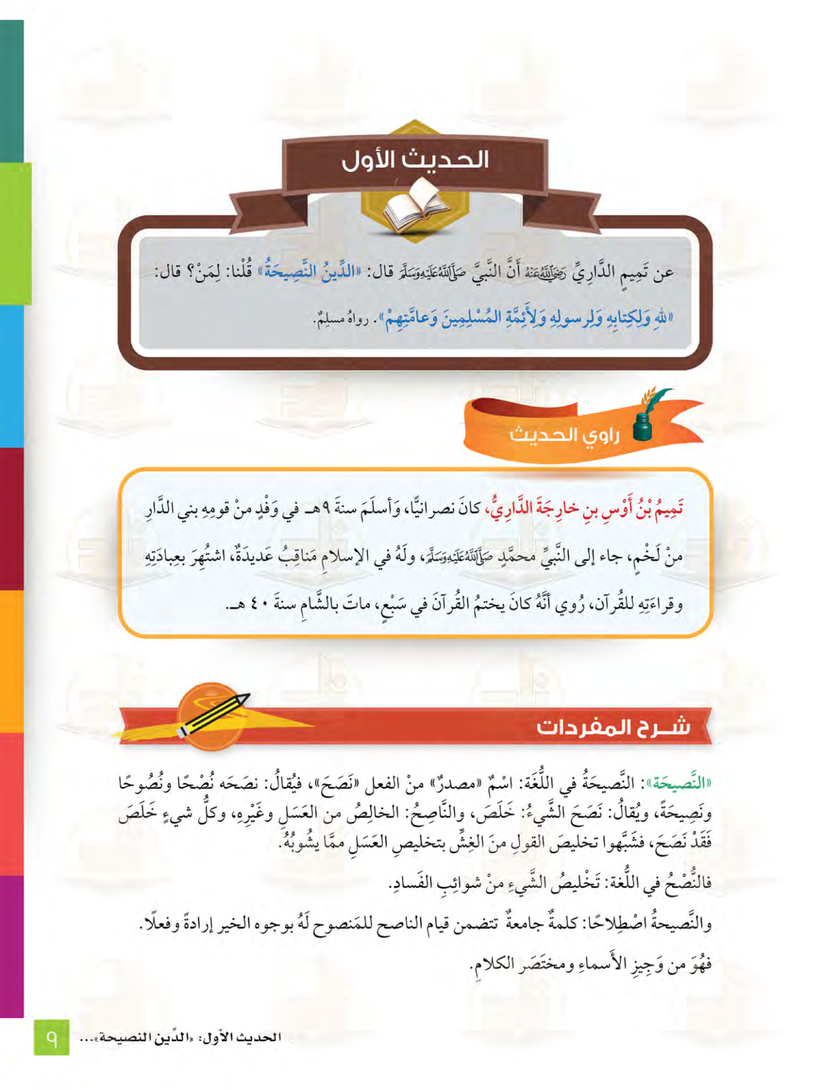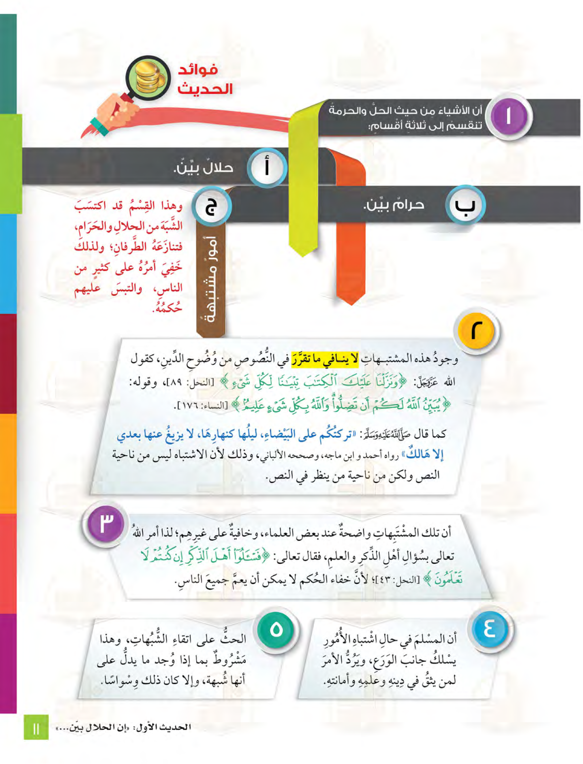- من كتاب التربية الإسلامية: بيان جملةٍ من أمراض القلوب التي يحتاج كل مسلمٍ إلى وقاية قلبه منها؛ كالغفلة، واتباع الهوى، وحب الدنيا، والعشق، والكبر، والجدال، والحسد، وبيان أهمية التوبة وأثرها في صيانة القلب، مع عرض المحتوى بطريقةٍ عصرية مبسطة، وأسلوبٍ سهلٍ شيق خال من الحشو والمخالفات.