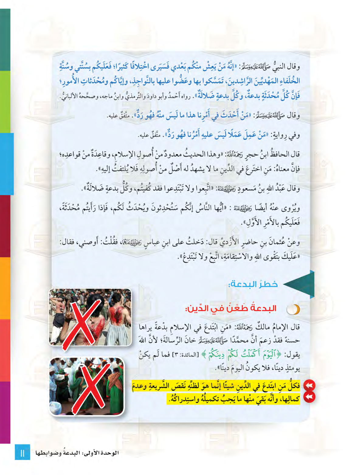 - من كتاب التربية الإسلامية: الآداب الشرعية، بدءا بالأدب مع الله تعالى، ومع رسول الله صلى الله عليه وسلم، ثم الآداب العامة في الطعام والشراب ودخول المنزل والخروج منه، وآداب النوم, إلخ, مع النصِّ على جملة من المسائل الفقهية المتعلقة بكل باب
