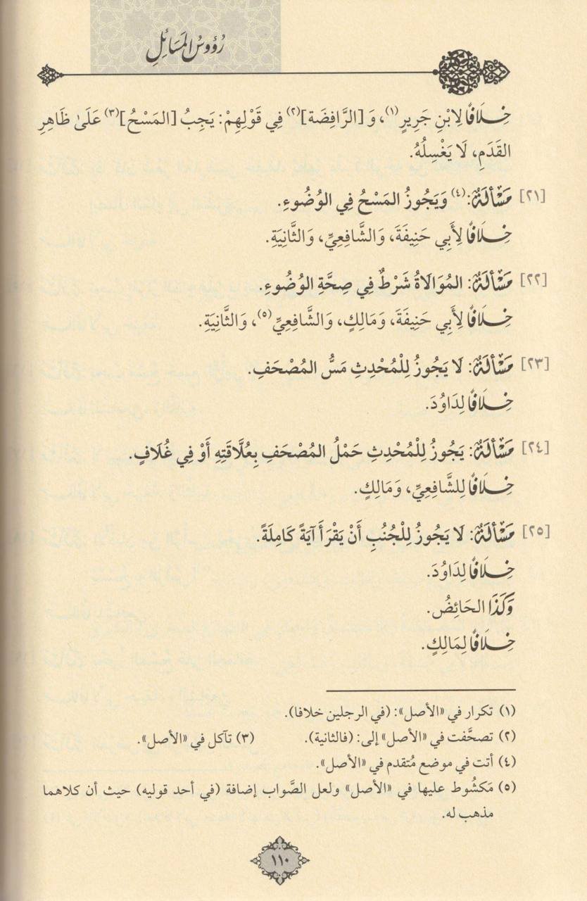يُعد هذا الكتاب من المختصرات التعليمية التي تهدف إلى جمع أهم المسائل الفقهية المعتمدة في مذهب الإمام أحمد بن حنبل، على شكل عناوين (رؤوس) مسائل مرتبة حسب أبواب الفقه، ككتاب الطهارة، الصلاة، الزكاة، الصيام، الحج، وغيرها.