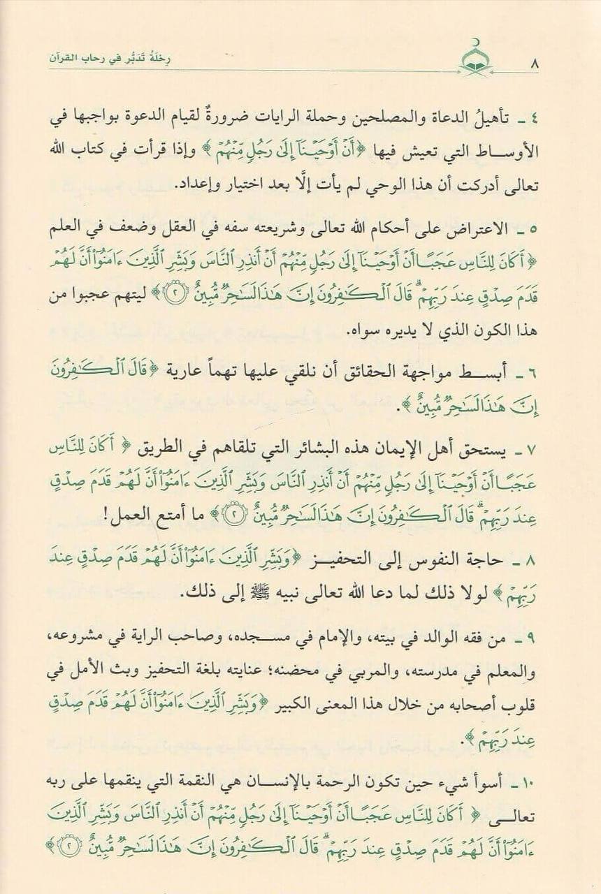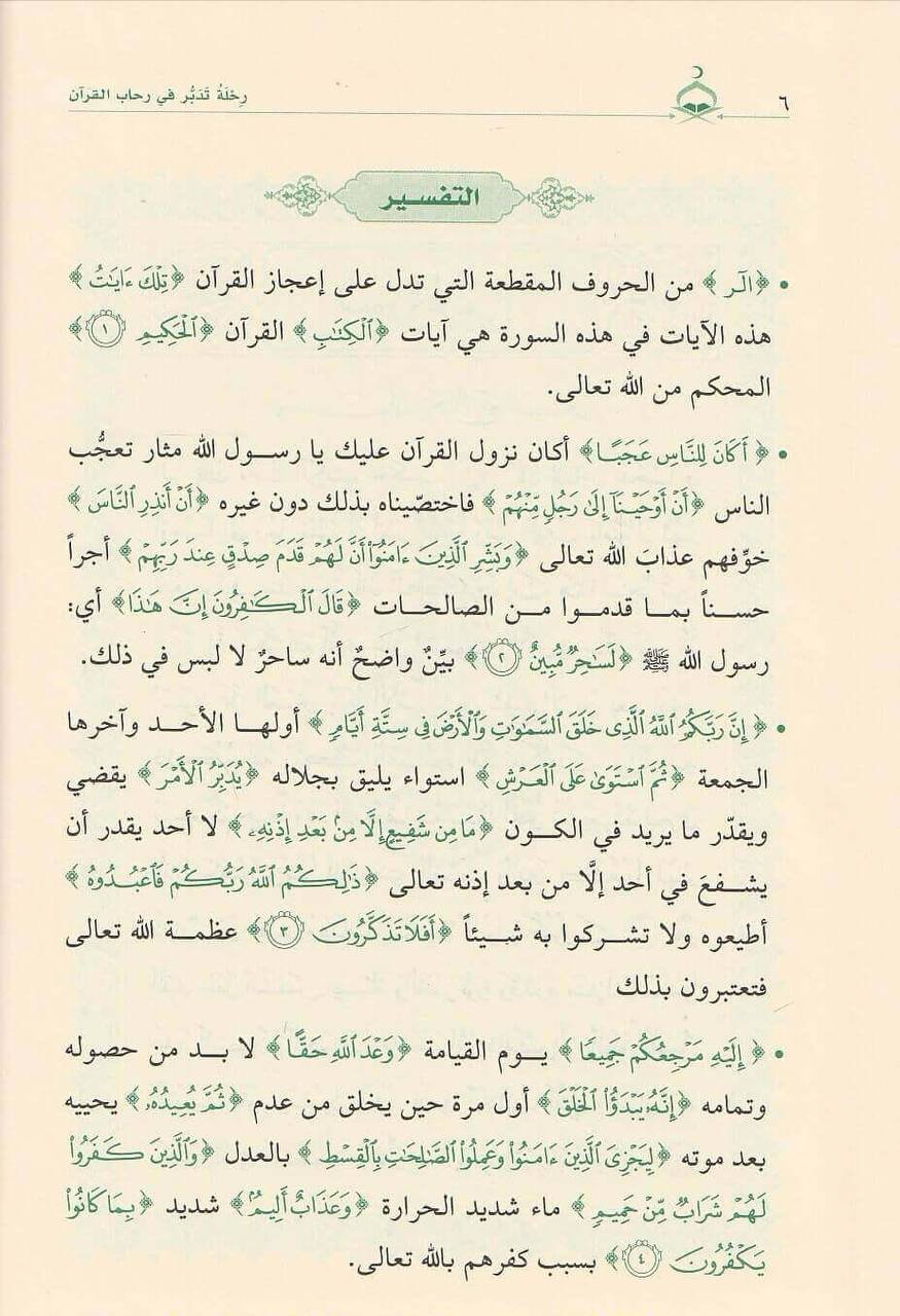 من أنفع الكتب وأوسعها في تدبر القرآن الكريم يفسر المؤلف الآيات القرآنية بعد أن يسردها ثم يبدأ بذكر التدبرات المتعلقة بكل آية