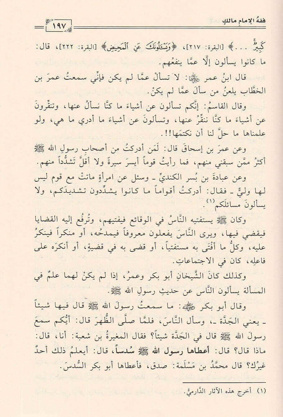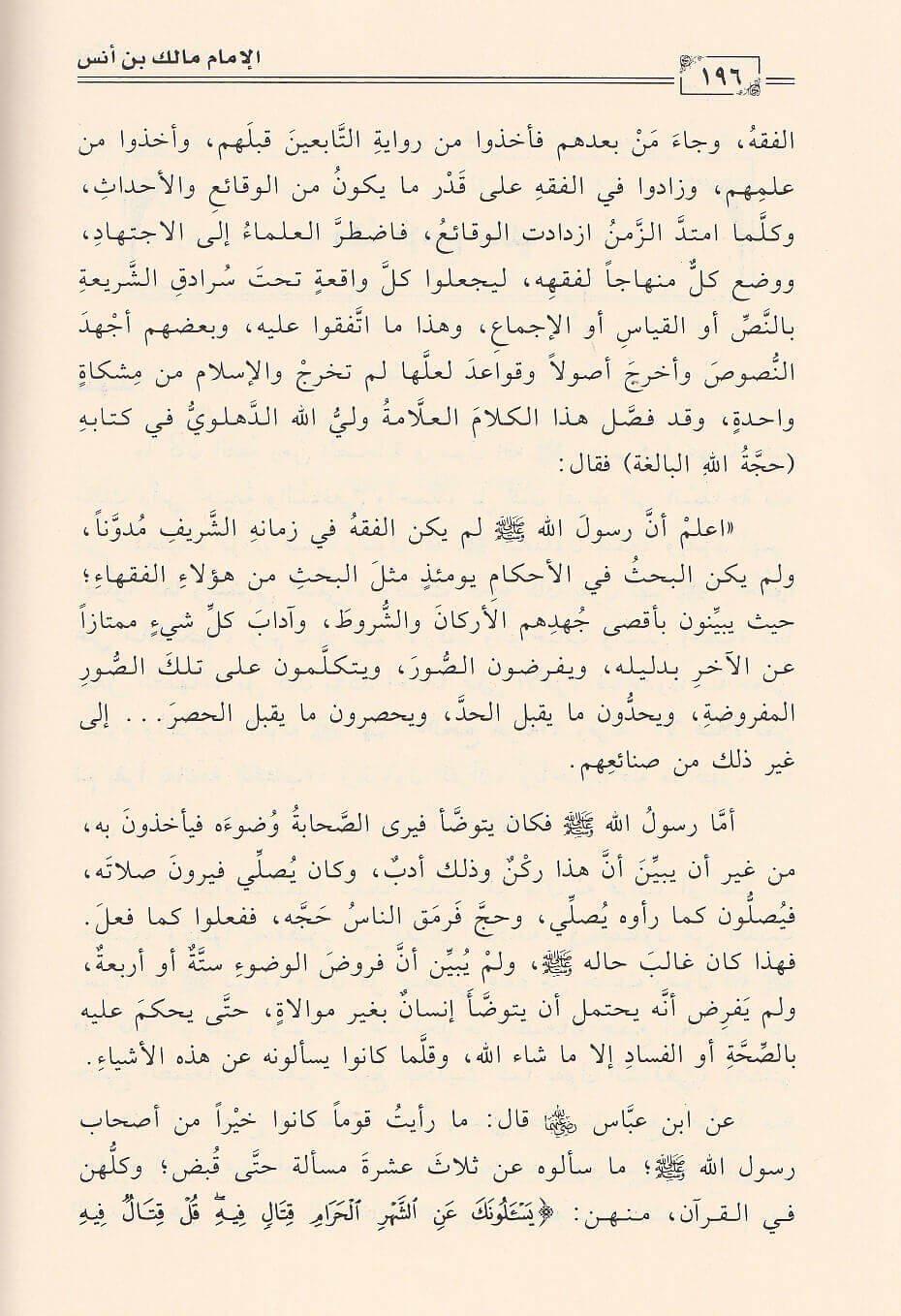 يقول الامام الشافعي ذاكرا له : إذ ذكر العلماء فمالك النجم ومالك حجة الله على خلقه بعد التابعين. ليس من السهل التحدث عن الشخص العظيم فان استوعب طرفا من حياته غيبت اطرف اخرى. وقد استمع الى كبار الشيوخ منذ نعومة اظفاره حتى جمع كثير من حديث حبيب الله صلى الله عليه وسلم ومن افواه الفقهاء السبعة وألم بكثير من علم الصحابة وفتاويهم واجتهاداتهم وعرف ما عند التابعين من علم واجتهاد وسمع لراي اهل الكوفة . فسمي بعالم اهل المدينة او إمام دار الهجر فتصرف اليه الابصار والاسمع والافئدة فكيف لا يكون عظيما والعظمة لله فهو اول من الف في الفقه على الحديث وشمل الابواب كلها على التقريب فقصده من في المشرق وشد له الرحال من في المغرب كل يرتشف رشفتا من العلم لا يضمأ بعدها ابدا . فقوام فقهه يقوم على مبدأ واحد : البحث عن المصلحة فحيث ما كانت المصلحة كان شرع الله. نترك القارئ ليسفر مع إمام مدينة الهجرة إمام مدينة رسول الله وخير خلقه.