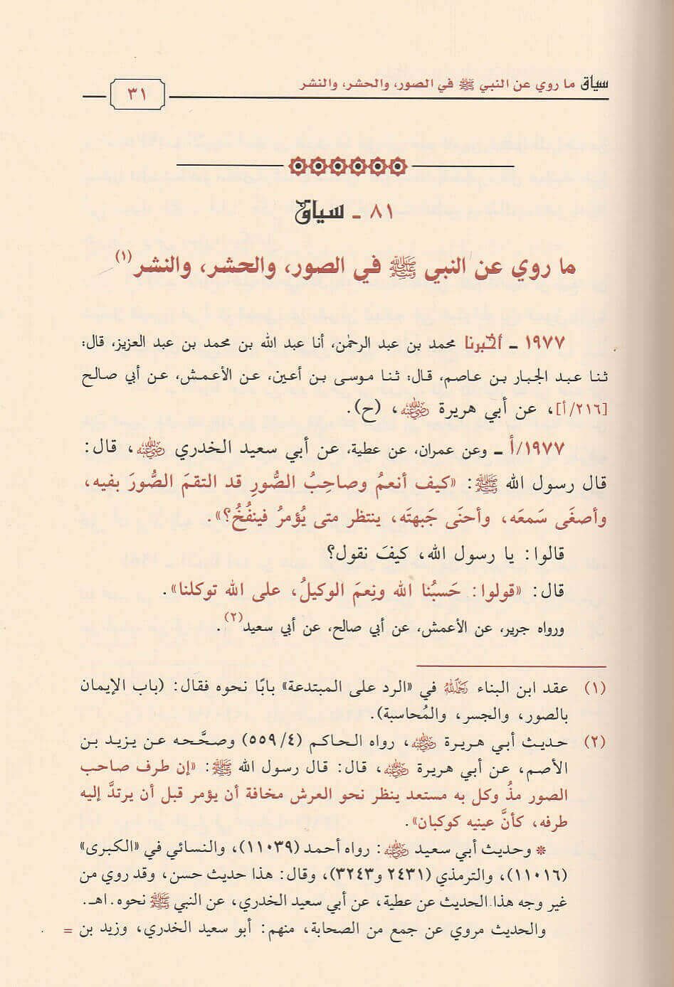 • بَابُ جُمَّاعِ وُجُوبِ الإِيمَانِ بِالْجَنَّةِ وَالنَّارِ والبعث بعد الموت والميزان والحساب والصراط