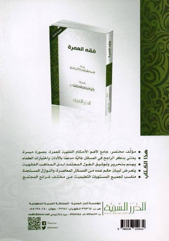 هذا الكِتابُ جامِعٌ لأهمِّ الأحكامِ الفِقهيَّةِ للعُمرةِ بصُورةٍ مُيسَّرةٍ، وقدْ تَميَّز بذِكرِ الرَّاجِحِ في المسائِلِ غالبًا، وذِكرِ أَظهرِ الأدلَّةِ وأَصحِّها، وتَحريرِ القولِ المُعتمَدِ في المَذاهبِ الفِقهيَّةِ المُعتمَدةِ وتَوثيقِه، وذِكرِ اختِياراتِ المُحقِّقينَ مِن العُلماءِ، وبيانِ حُكمِ عَددٍ من المَسائِلِ المُعاصِرةِ، والنَّوازِلِ المُستجَدَّةِ.