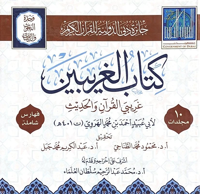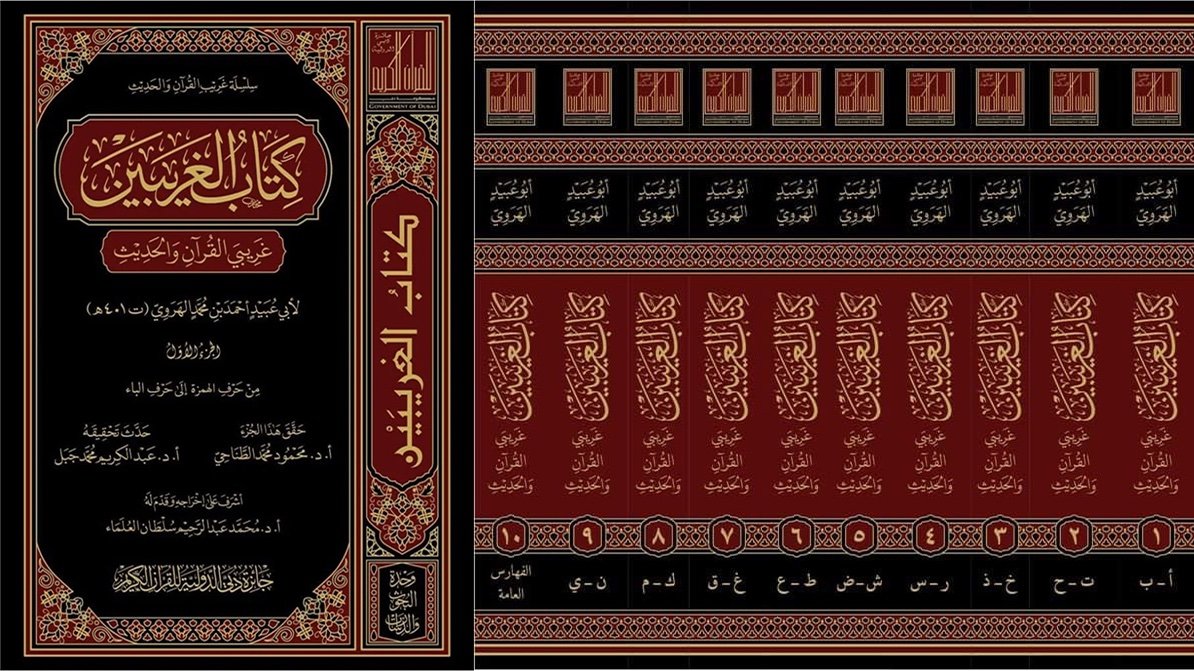 كتابُ (الغريبَين) للإمام العلّامة أبي عبيدٍ أحمد بن محمد الهروي(ت401هـ)، الذي يقول في شأنه ياقوتٌ الحموي:(أبو عبيدٍ .. المؤدِّب، صاحبُ كتاب غريبَي القرآن والحديث، والسابق إلى الجمع بينهما في علمنا). تزفُّه جائزة دبي الدولية للقرآن الكريم إلى القرّاء وأهل العلم على خير وجهٍ من الخدمة العلمية والفنية، مع الفهرسة العلمية الشاملة، في عشر مجلداتٍ حِسان ولله الحمد.