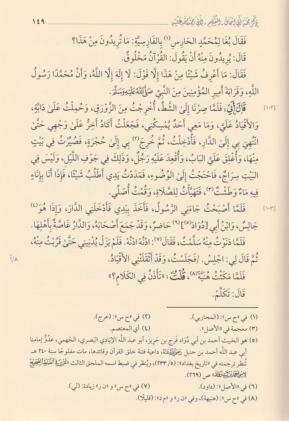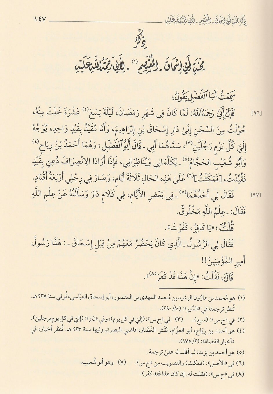 رواية ولده أبي الفضل صالح برواية ابي بكر الاسفرايني عنه ويليه من عمل المحقق المستدرك من كتاب المحنة رواية ابي الفضل صالح المجموع من موايات ابي الفضل صالح في المحنة وغيرها