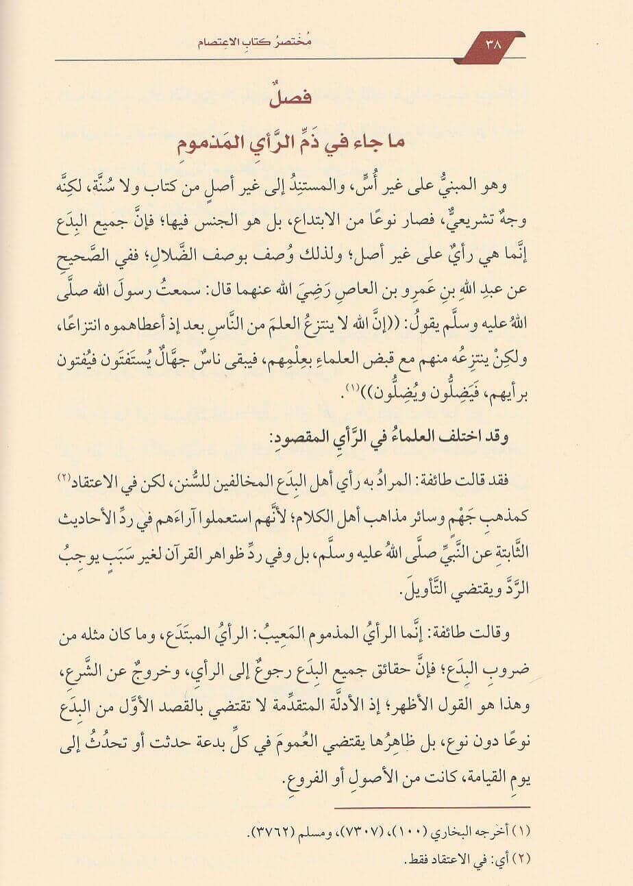 هذا الكِتابُ هو اختصارٌ لكِتابِ الاعتِصامِ للإمامِ أبي إسحاقَ الشَّاطبيِّ رحِمهُ اللهُ، الذي يُعَدُّ من أفضلِ الكُتُبِ التي صُنِّفتْ في موضوعِ البِدعةِ وما يَتعلَّقُ بِها، إلَّا أنَّه أطال فيه واستطرَدَ، وحشَدَ الأدلَّةَ الصَّحيحةَ والضعيفةَ أحيانًا؛ فرَأى المُؤلِّفُ اختصارَه؛ لتَقريبِه لعُمومِ القُرَّاءِ وتَنقيتِه مِن الأحاديثِ الضَّعيفةِ..