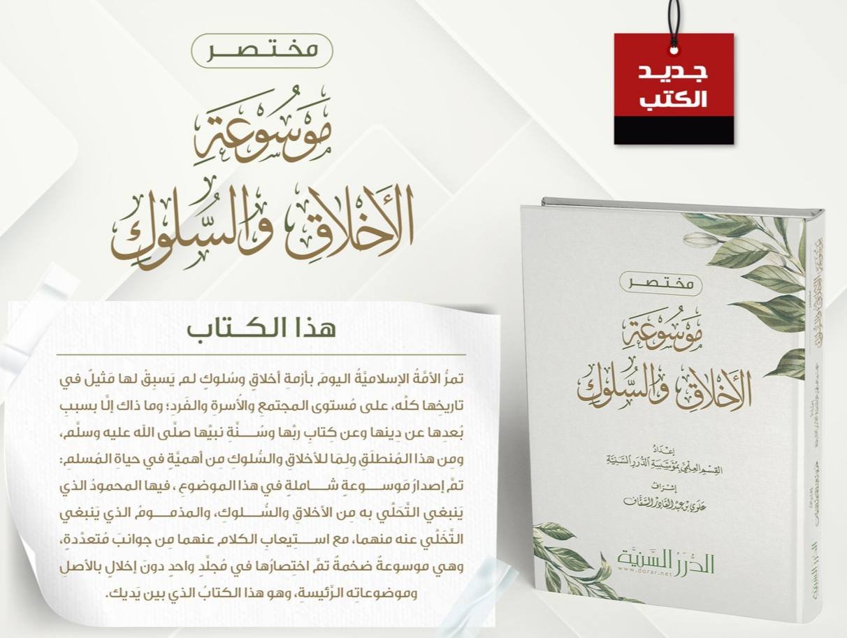 تمرُّ الأمَّةُ الإسلاميَّةُ اليومَ بأزمةِ أخلاقٍ وسُلوكٍ لم يَسبِقْ لها مَثيلٌ في تاريخِها كلِّه، على مُستوى المجتمعِ والأُسرةِ والفَردِ؛ وما ذاك إلَّا بسببِ بُعدِها عن دِينها وعن كِتابِ ربِّها وسُنَّةِ نبيِّها صلَّى الله عليه وسلَّم، ومِن هذا المُنطلَقِ ولِمَا للأخلاقِ والسُّلوكِ مِن أهميَّةٍ في حياةِ المُسلمِ: تمَّ إصدارُ مَوسوعةٍ شاملةٍ في هذا الموضوعِ ، فيها المحمودُ الذي يَنبغي التَّحَلِّي به مِن الأخلاقِ والسُّلوكِ، والمذمومُ الذي يَنبغي التَّخَلِّي عنه منهما، مع استِيعابِ الكلام عنهما مِن جوانبَ مُتعدِّدةٍ، وهي موسوعةٌ ضخمةٌ تمَّ اختِصارُها في مُجلَّدٍ واحدٍ دونَ إخلالٍ بالأصلِ وموضوعاتِه الرَّئيسةِ،