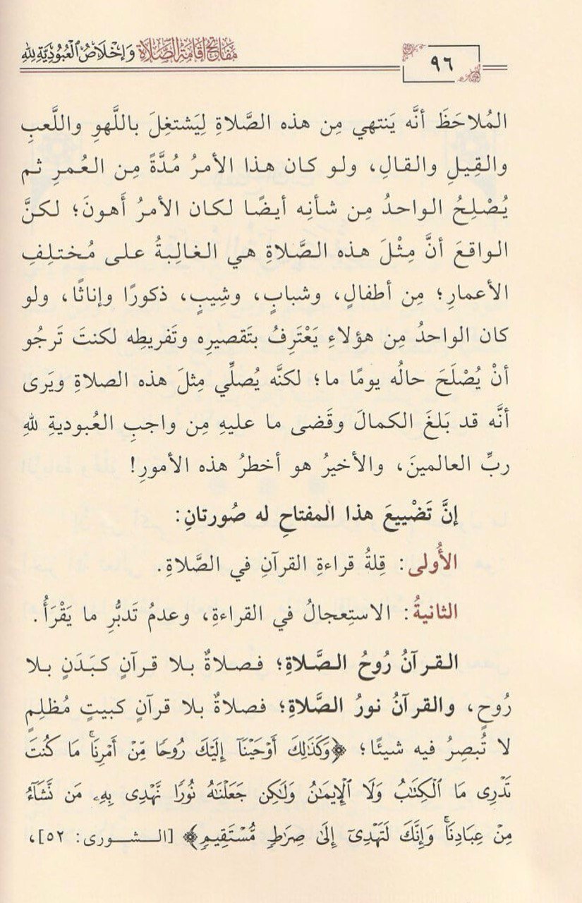 مفاتح إقامة الصلاة وإخلاص العبودية لله