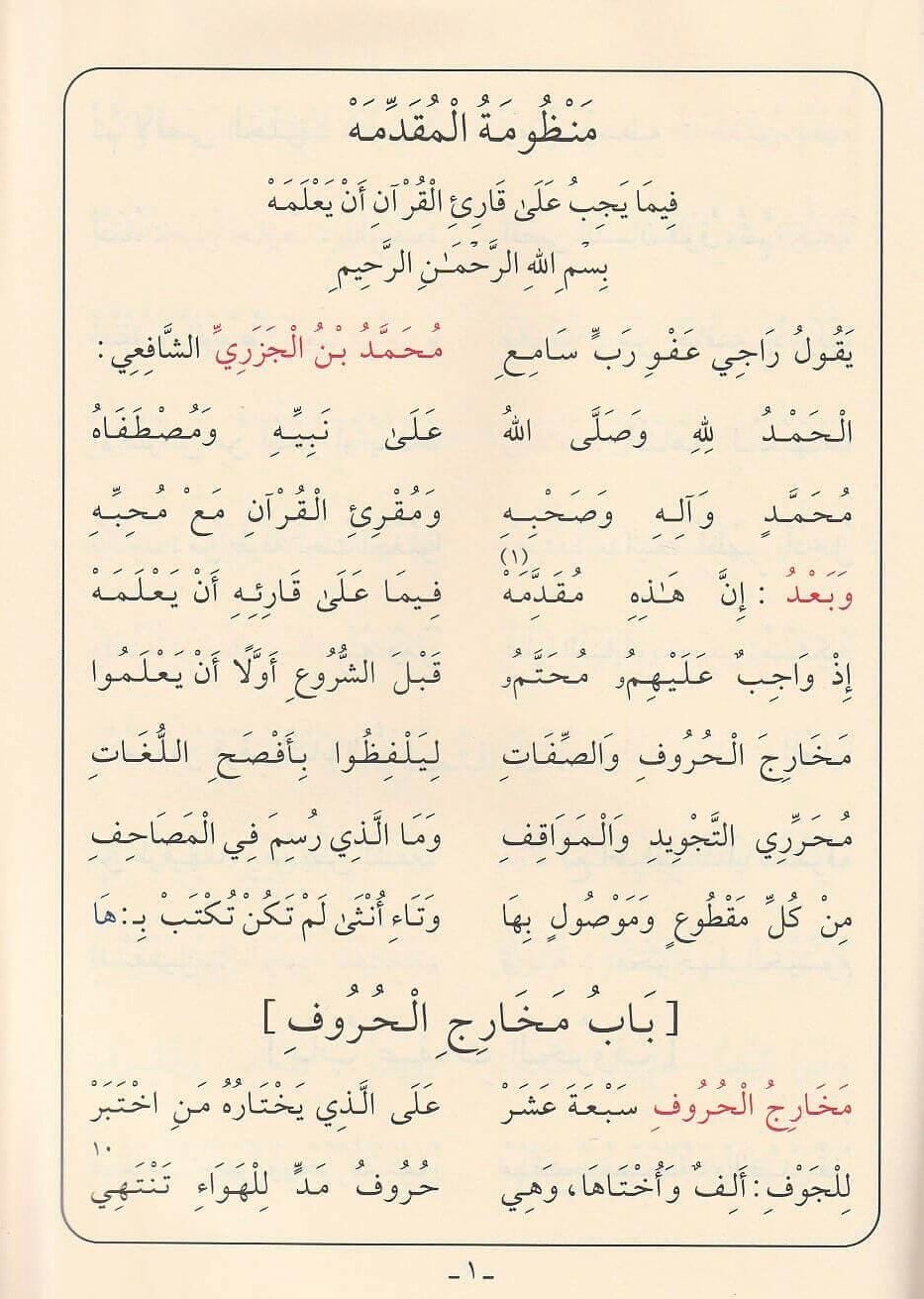 منْ نظمِ إمامِ القرّاءِ وحُجةِ المقرِئينَ أبي الخيرِ محمدِ ابنِ الجزَريِّ، قُدِّمتْ لأهلِ القرآنِ محقَّقةً مصحَّحةً وَفْقَ قواعدَ إخراجِ النصوصِ التي اِرتضاها أئمَّتُنا، وقدْ رجعَ المحقِّقُ في تصحيحِ النصِّ إلى عدَّةِ نسخٍ خطيةٍ له، بالإضافةِ إلى عددٍ منْ شروحِ المنظومةِ المطبوعةِ والمخطوطةِ، وقد حوتْ جُلَّ أبحاثِ علمِ التجويدِ المهمةِ، معَ حُسنِ سبكٍ، ودقةِ لفظٍ، وجمالِ أُسلوبٍ، حيثُ رزقَها اللهُ تعالى القَبولَ لدى الناسِ على مرِّ الأيامِ والدُّهورِ، منْ زمنِ ناظمِها إلى زمانِنا هذا.
