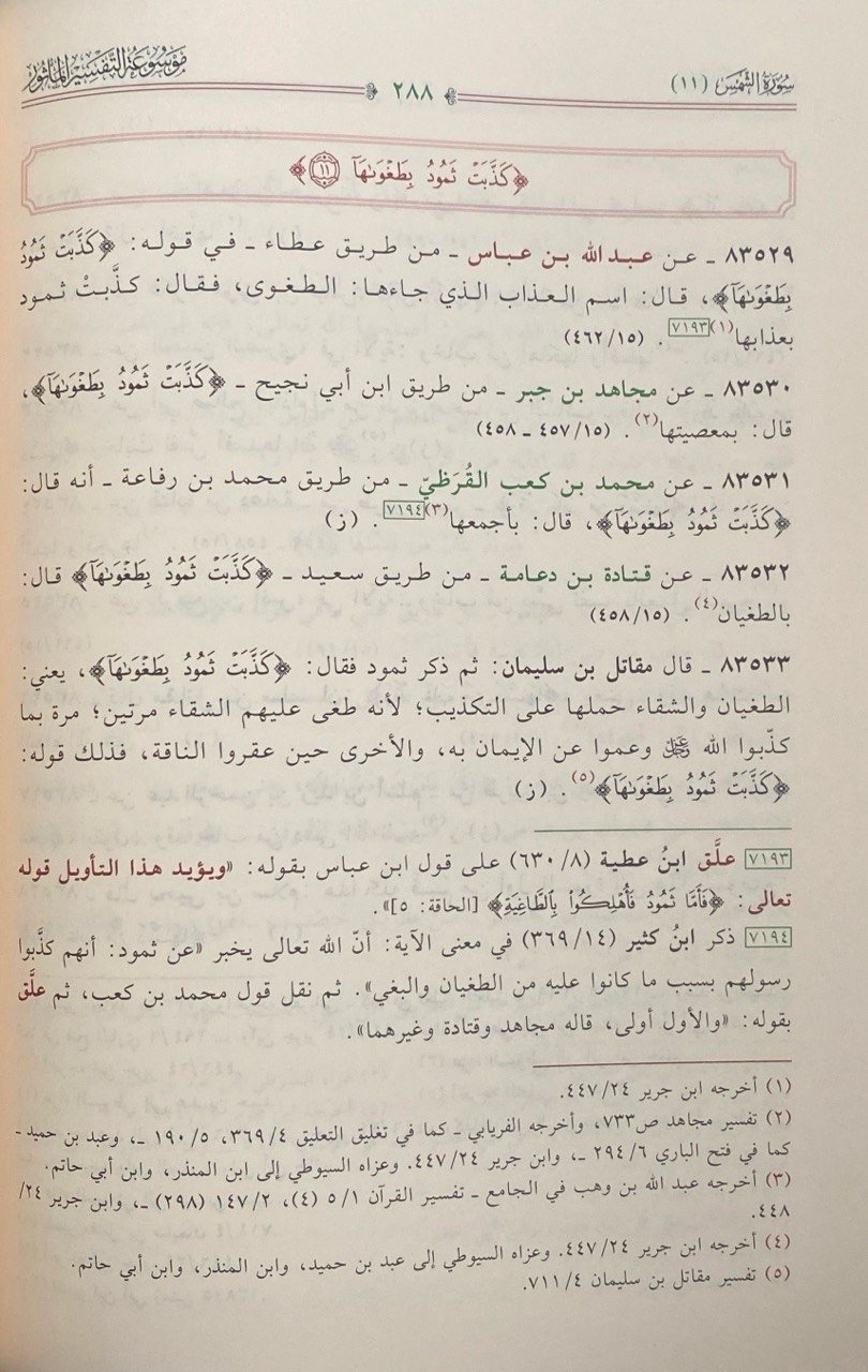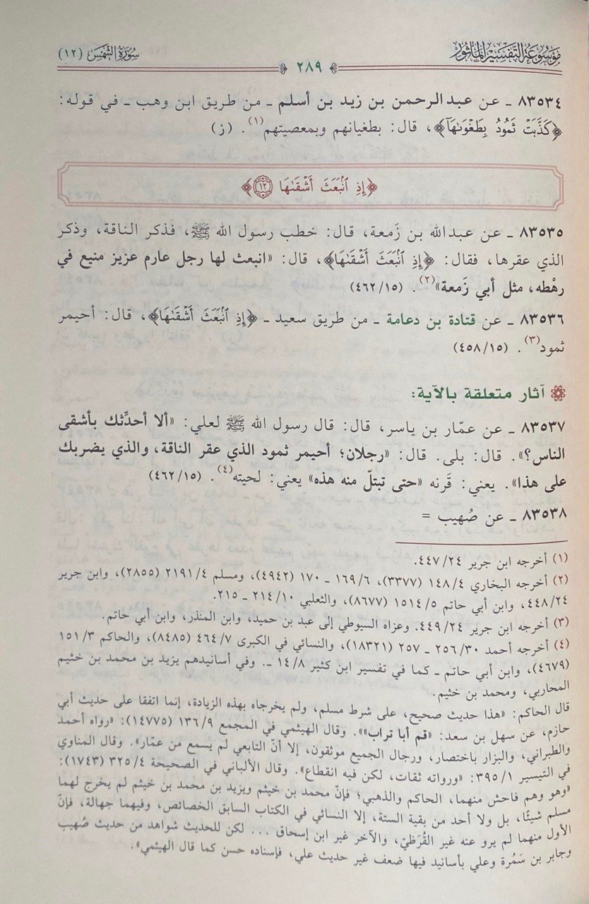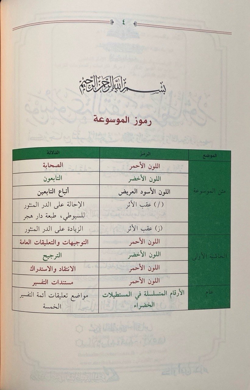 تشتمل هذه الموسوعة على جميع ما ورد عن النبي ﷺ والصحابة والتابعين وتابعيهم في تفسير القرآن الكريم؛ معزوًا إلى مصادره الأصلية، التي تعدت كتب التفسير المسندة إلى جميع الكتب المسندة في الحديث والعقيدة والسير والتراجم والفقه، وتتضمن تعليقات: ابن جرير، وابن عطية، وابن تيمية، وابن القيم، وابن كثير على الأحاديث والآثار الواردة في التفسير؛ سواء بتوضيحها أو شرحها أو توجيهها…