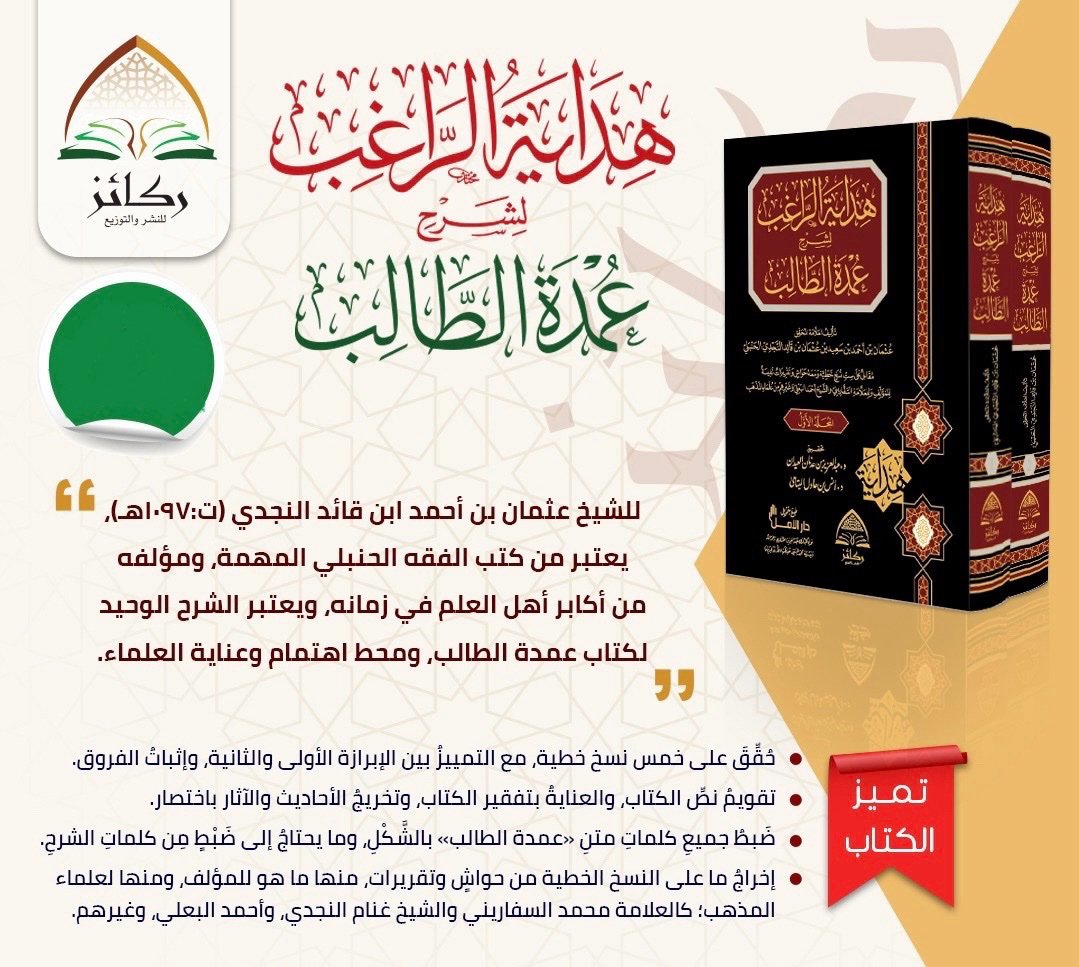 إن من أنسب كتب الفقه, وأقربها بالنسبة للمبتدئين من الطلاب في دراسة مذهب الإمام أحمد بن حنبل رضي الله عنه: كتاب هداية الراغب للشيخ العلامة, الفقيه المحقق: عثمان بن أحمد النجدي الحنبلي الذي شرح به رسالة عمدة الطالب لنيل المآرب للشيخ العلامة, الإمام الفقيه: منصور بن يونس البهوتي الحنبلي, فقد جمع هذا الشرح بين الاختصار, وسهولة العبارة, ودقة البحث, ووضوح الإشارة