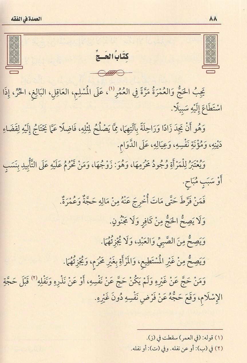 إن الإمام العلاَّمة موفَّق الدِّين ابن قدامة صاحب التصانيف الفقهية البديعة، من علماء القرن السادس الهجري، ومن أئمة الفقه، وشيخ المذهب في زمانه، له عنايةٌ فائقةٌ وقدمُ راسخةُ في تأليف كتب الفقه الحنبلي على مذهب إمامه، حيث كان ممن خدموا هذا المذهب. وله أربعة كتبٍ متفردة في الفقه، رَاعَى في تأليفها طبقات التلقي والطلب، فألَّف للمبتدئين، وللمتوسطين، وللمنتهين. ويُعَدُّ كتاب “العُمْدَة” من متون المذهب المعتمدة التي ألفها لتلقين المبتدئين، وهو من أقدم المختصرات، وأنفعها، وأشهرها، فهو متنٌ فقهي مختصر، واضح العبارة، سهل الفهم، ومرجع للحُفَّاظ، جرى فيه على قول واحدٍ ممّا اختاره من الروايات والأوجه في المذهب، على سبيل الإستنباط من ذلك الحديث الذي يُصدِّر به الباب غالباً. ولأهميَّة كتاب “العمدة” ونفاسته، ولطف مسلكه، فقد شرحه الإمام الموفق، فجاء شرحه واضحاً، سهلاً مختصراً، يخدم مقصد المتن الذي رمى إليه الموفق من تأليفه، فقد جمع بين الإختصار والوضوح والشمول.